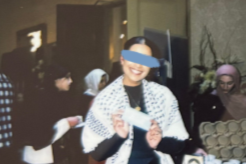 “Palestine Fundraiser, Samira just collected a $10K donation and holds up the cheque.”